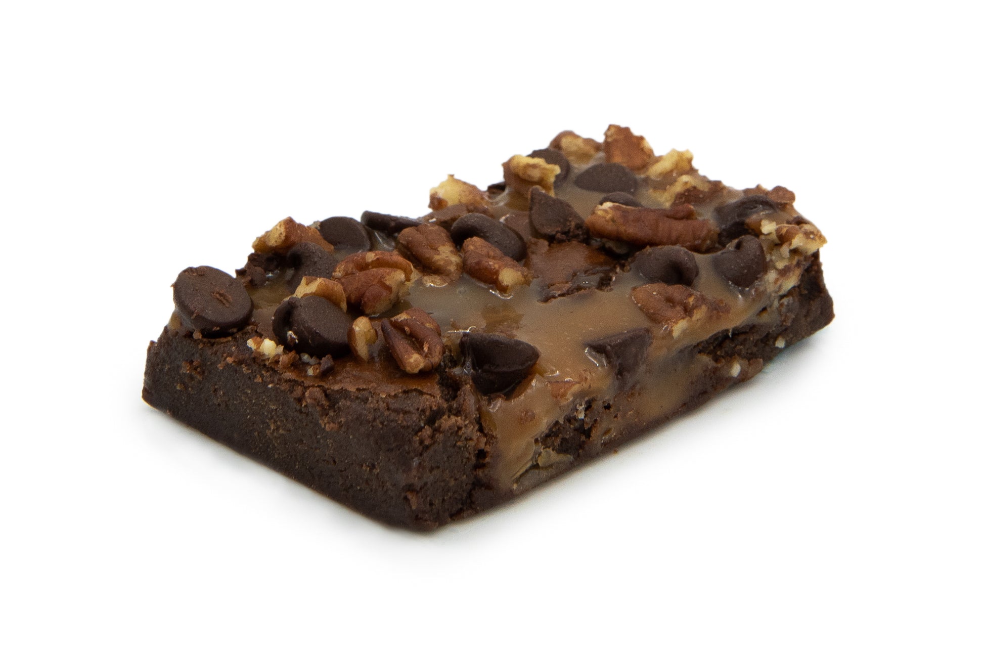 Our double chocolate brownie topped with crunchy, gooey, caramel perfection and pecan pieces. You won't find another brownie like this one.