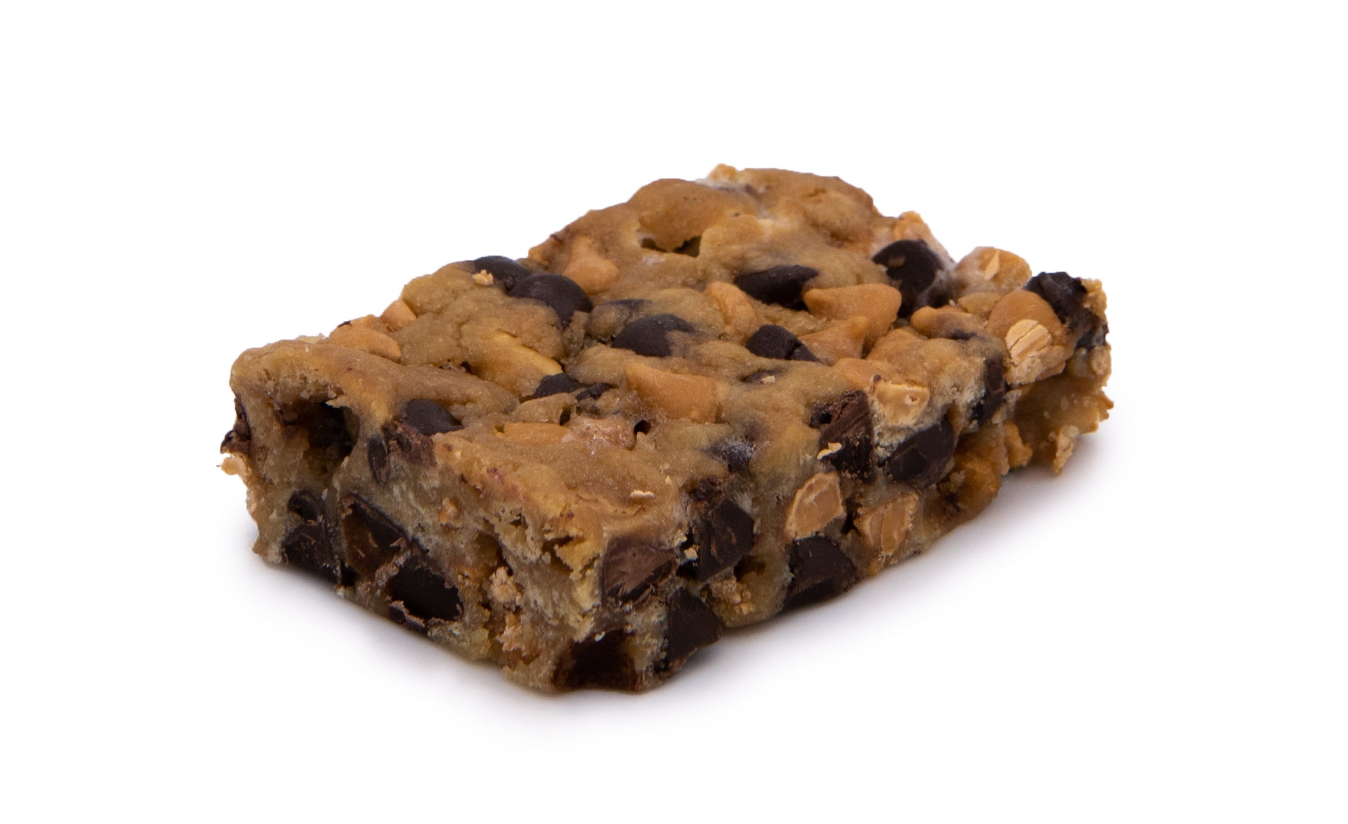 Ingredients: butterscotch chips (sugar, fractionated palm kernel oil, nonfat milk powder, artificial color [FD&C blue no. 2 lake, yellow no. 5 lake, yellow no. 6 lake, and titanium dioxide], soy lecithin, artificial flavor), semisweet chocolate chips (sugar, chocolate liquor, cocoa butter, dextrose, lecithin, vanillin), untreated wheat flour, Non-GMO Premium Vegetable Blend (Palm Oil, Palm Fractions, Water, Salt, Emulsifiers [Soya Lecithin, Distilled Monoglycerides], Natural Butter Flavour, Citric Acid, Antioxidant [Mixed Tocopherol {Soy-Derived}], Vitamin A & Colouring [Beta-Carotene]), whole eggs, brown sugar, marshmallows (corn syrup, sugar, modified food starch-corn, gelatin, water, dextrose, natural and artificial flavor, tetrasodium pyrophosphate), peanuts, corn syrup, maple flavor, baking powder, salt.