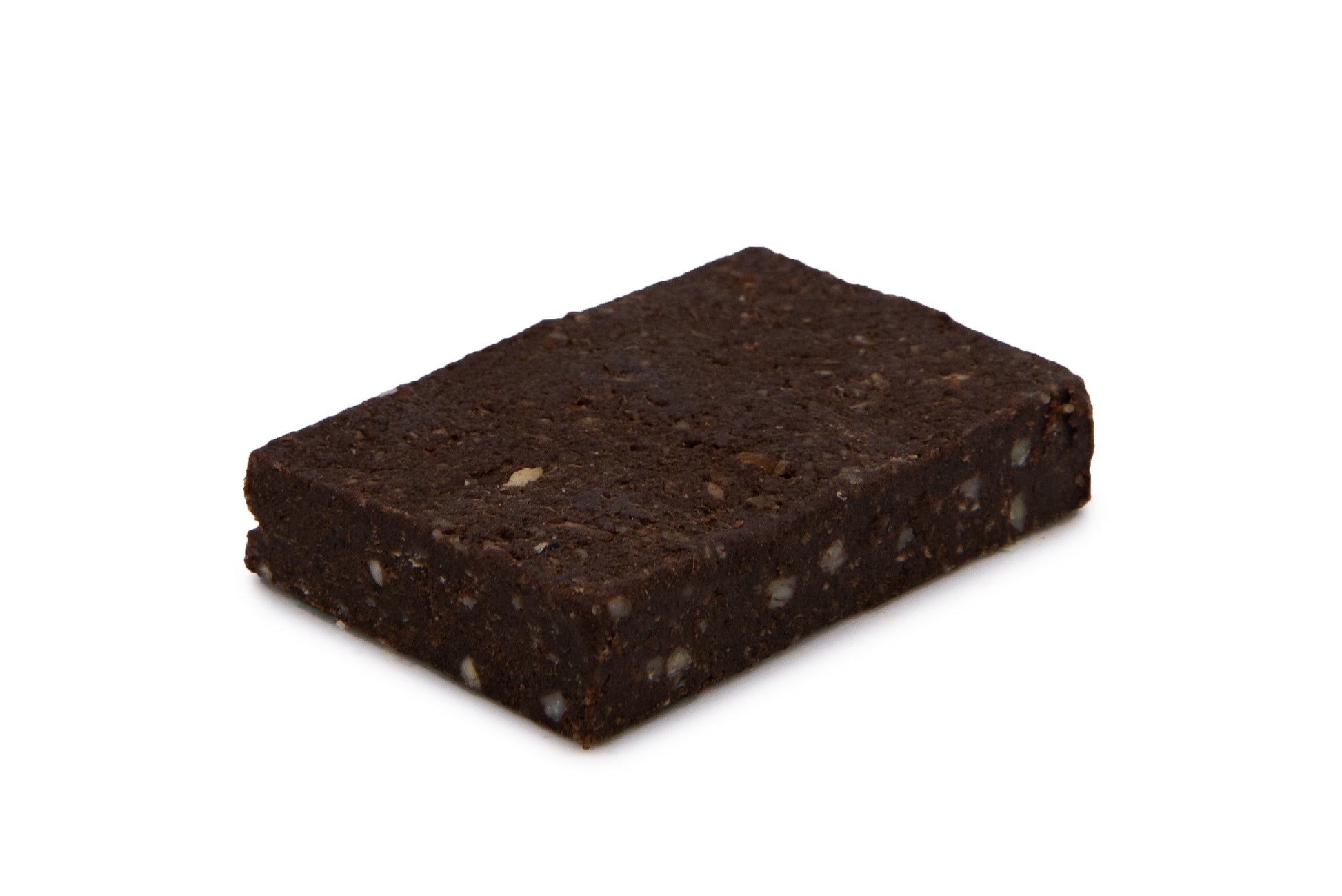This bar is a natural way to add some pep to your step. Deep notes of cocoa and coffee in combination with fruits and nuts round out the complex flavors of this all natural, vegan, raw bar.