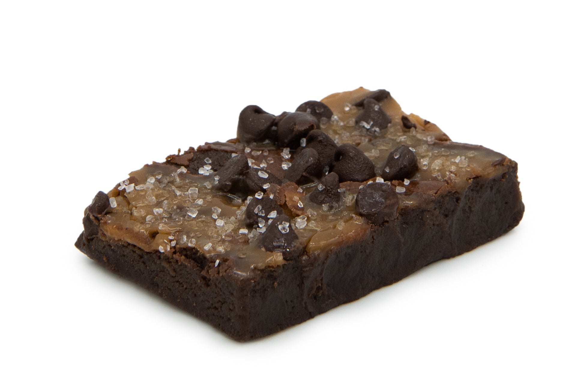 Our caramel brownie balanced with the savory crunch of coarse sea salt.